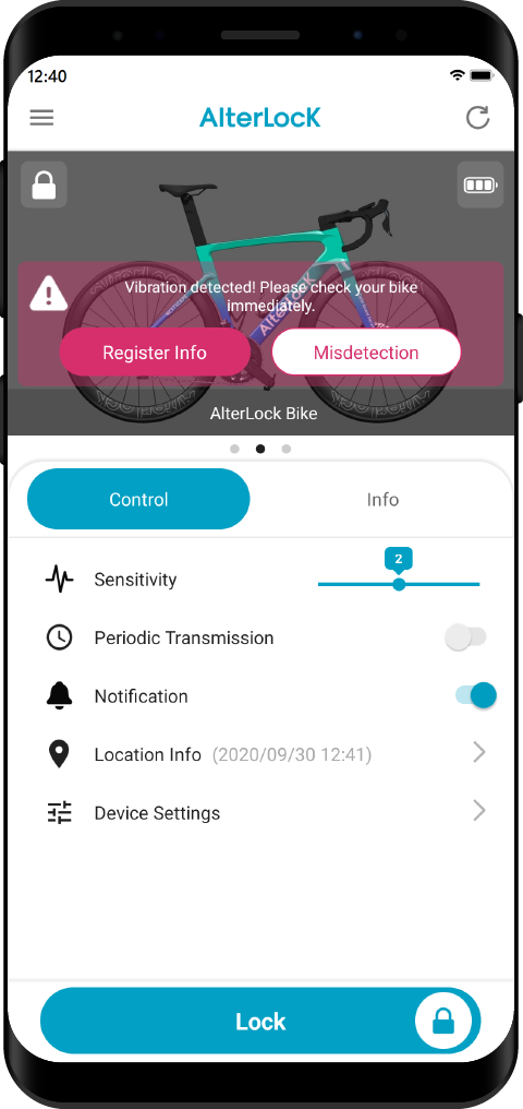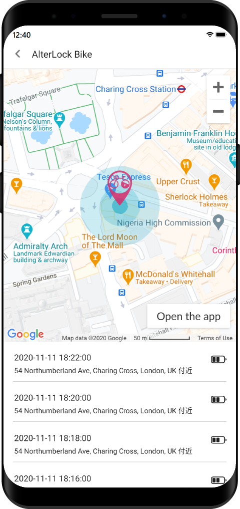Open de app, activeer, check het alarm en controleer de locatie. Laat periodieke locatiegegevens doorzenden. Handig als je op vakantie bent of je hebt een verhuurdienst en wil ten alle tijden weten waar de fietsen zich bevinden !