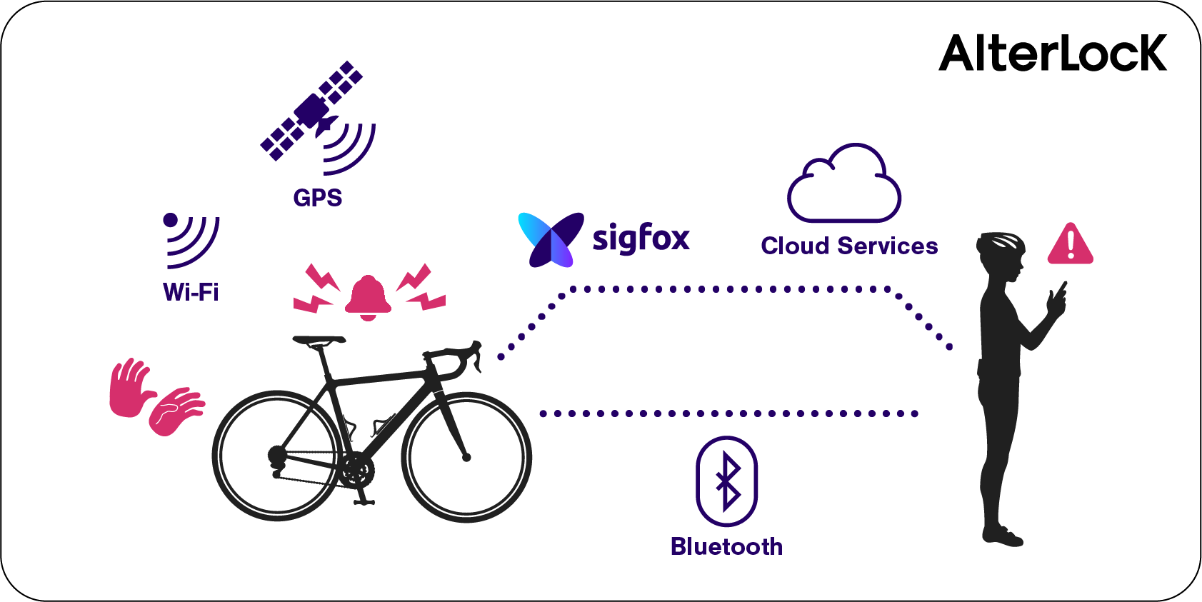 Alterlock meld beweging - een luid waarschuwings signaal/alarm klinkt - een melding op je telefoon - check de positie van je fiets !